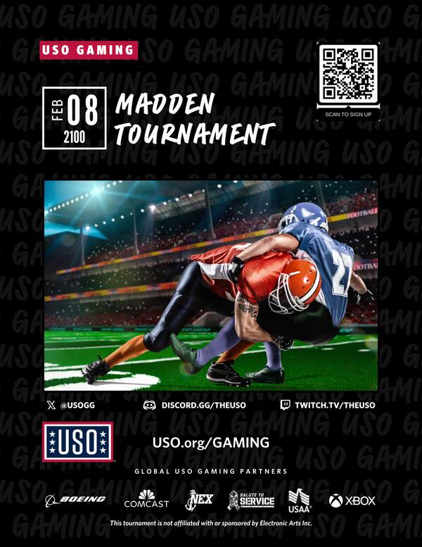 USO BPTA hosts a Madden Tournament for service members to face off in friendly competition leading up to the Super Bowl game to boost morale and earn ultimate bragging rights.