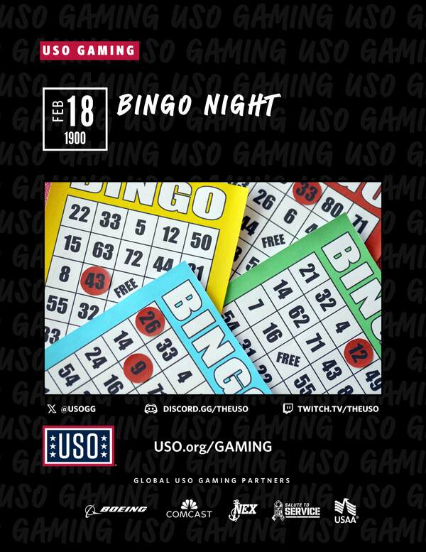 USO BPTA will host a Bingo Night for BPTA coalition service members, offering a fun way to boost morale while enjoying the excitement of calling out Bingo!