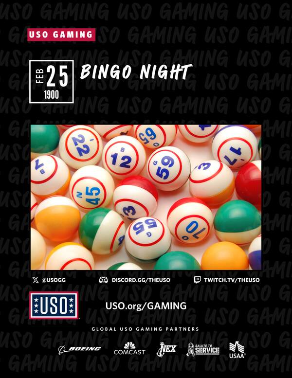 USO BPTA will host a Bingo Night for BPTA coalition service members, offering a fun way to boost morale while enjoying the excitement of calling out Bingo!