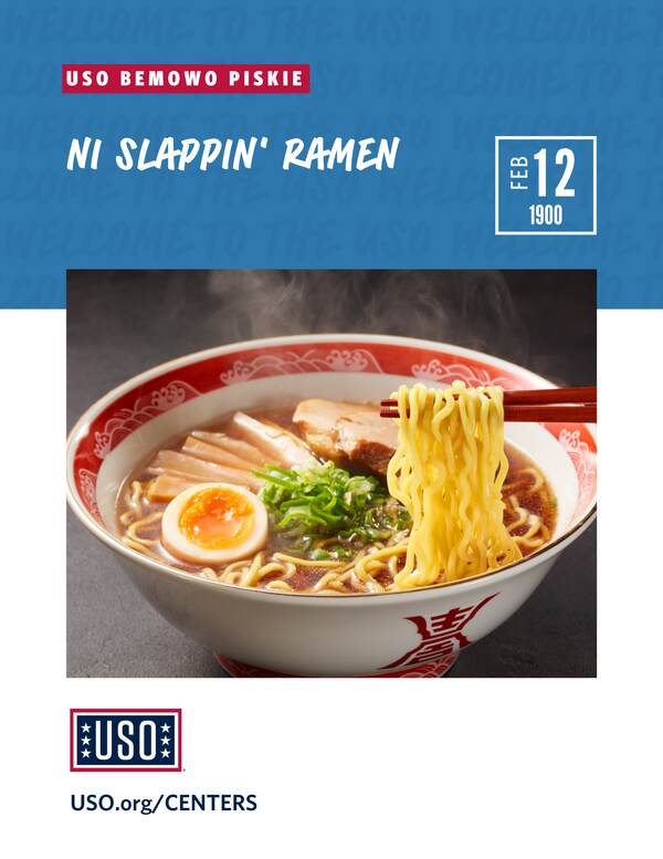 Join us at USO BPTA for a ramen bar, chopstick basics, and other interactive activities. Stop by and enjoy!