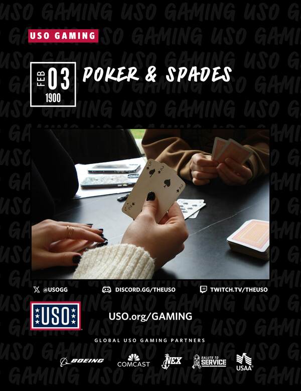 USO BPTA to host the Poker & Spades Tournament night for coalition service members to come together for a friendly competition.