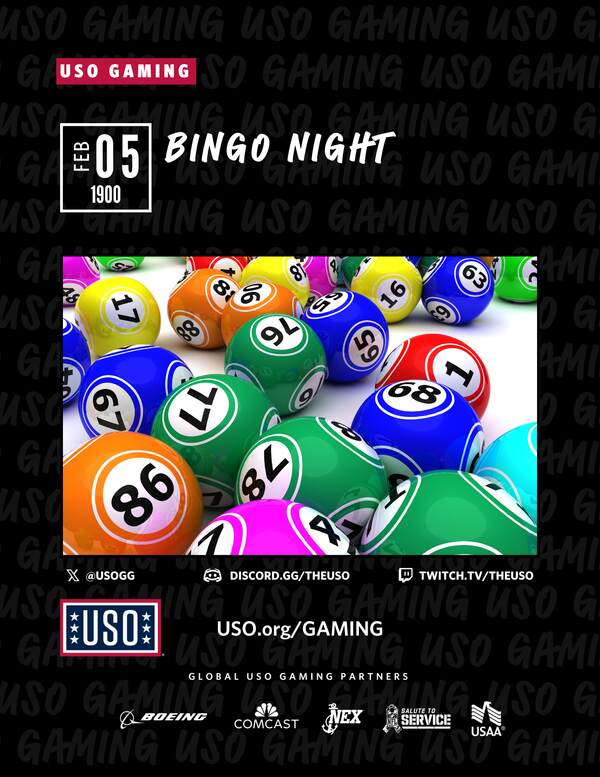 USO BPTA will host a Bingo Night for BPTA coalition service members, offering a fun way to boost morale while enjoying the excitement of calling out Bingo!