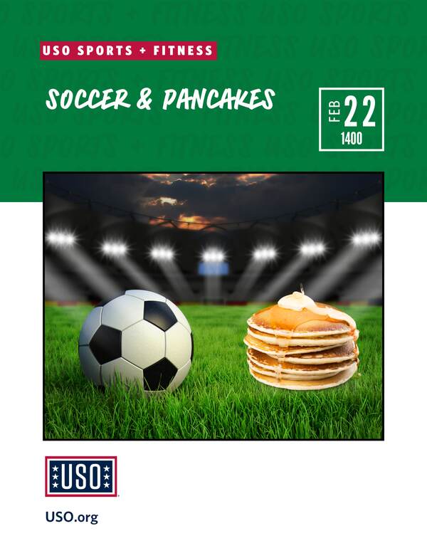 USO BPTA will host a 6v6 indoor international soccer tournament for coalition service members at the Polish Gym. Teams will compete in bracket play, with winners earning ultimate bragging rights. After the tournament, refuel with some freshly made pancakes at the USO BPTA Center.