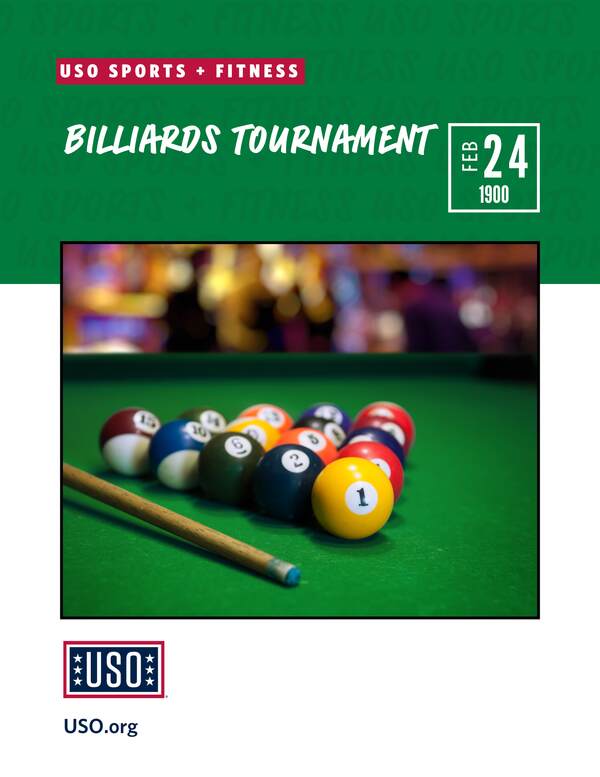 Join us at USO BPTA for a fun and competitive Billiard Tournament filled with laughs, friendly competition, and good vibes all around!