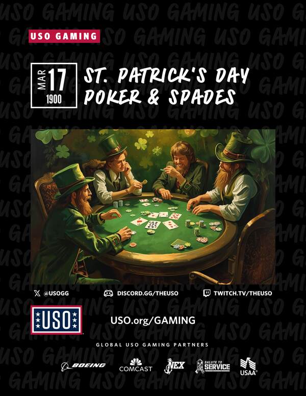 USO BPTA will host a St. Patrick’s Day celebration for BPTA coalition service members, offering a fun way to boost morale, complete with poker & spades, snacks, and more.
