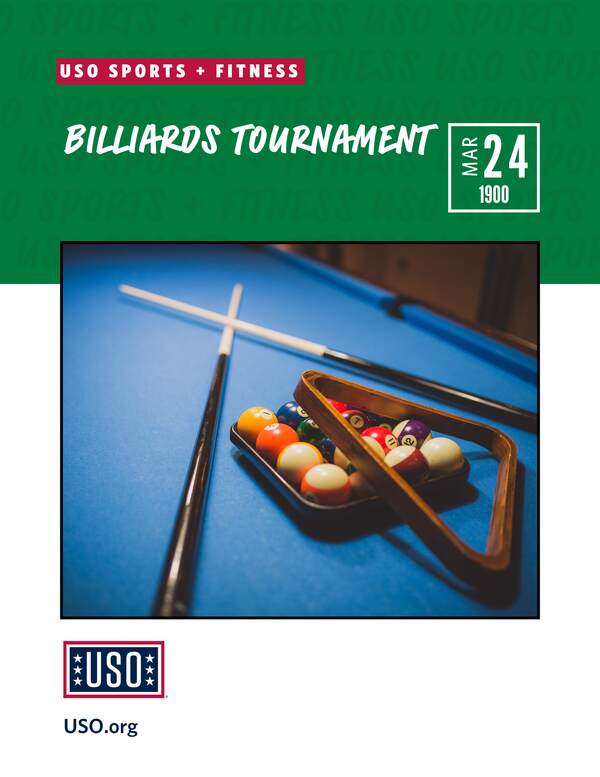 Join us at USO BPTA for a fun and competitive Billiard Tournament filled with laughs, friendly competition, and good vibes all around!
