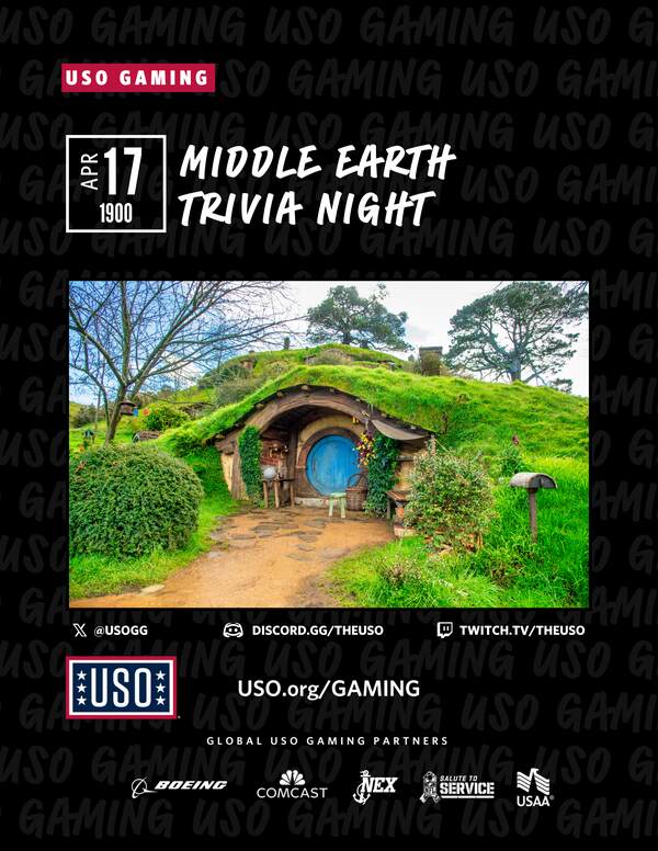 Join us at USO BPTA for a middle earth themed trivia night designed to boost morale and help coalition service members connect and recharge.