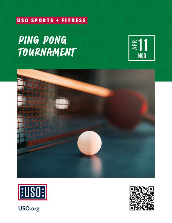 USO BPTA will host an action-packed international ping pong tournament for coalition service members. Bracket winners will earn bragging rights while boosting morale and camaraderie.