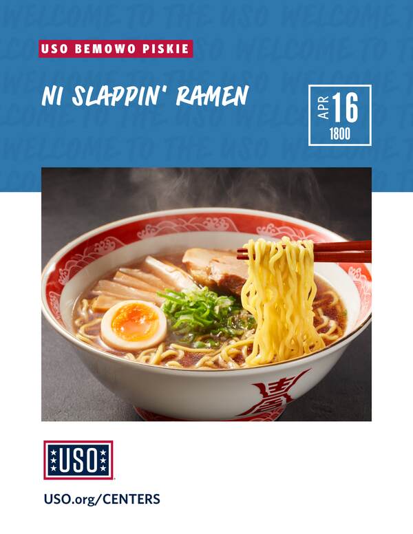 Join us at USO BPTA for Ramen Night, where coalition service members can relax, enjoy their favorite ramen, and connect with others while boosting morale and recharging in a fun and welcoming atmosphere.
